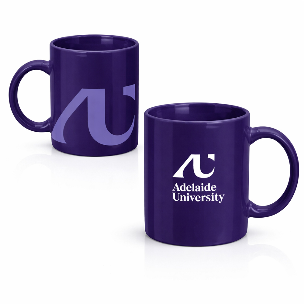 330ml Ceramic Mug with 2 colour wrap print, presented in an individual white box.